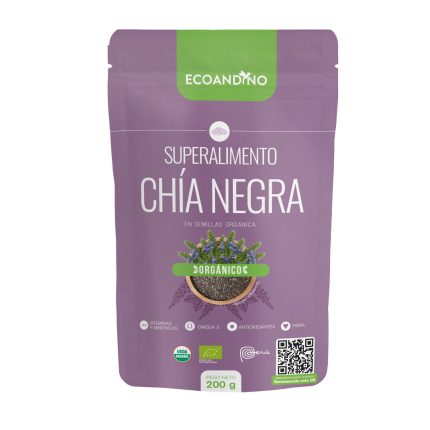 La chía orgánica de Ecoandino aporta múltiples beneficios para la salud. Es un superalimentos con alto contenido de omega 3 y 6; también contiene antioxidantes, magnesio y fibra. Este superalimento es una excelente fuente de ácidos grasos esenciales. Las semillas de chia orgánica contienen componentes que son beneficiosos para la salud.